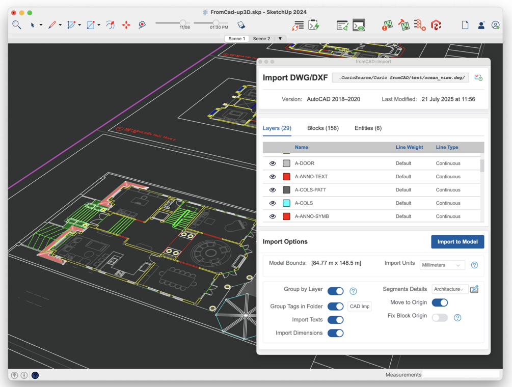 Curic fromCAD is a SketchUp plugin developed to help import and control 2D CAD files.