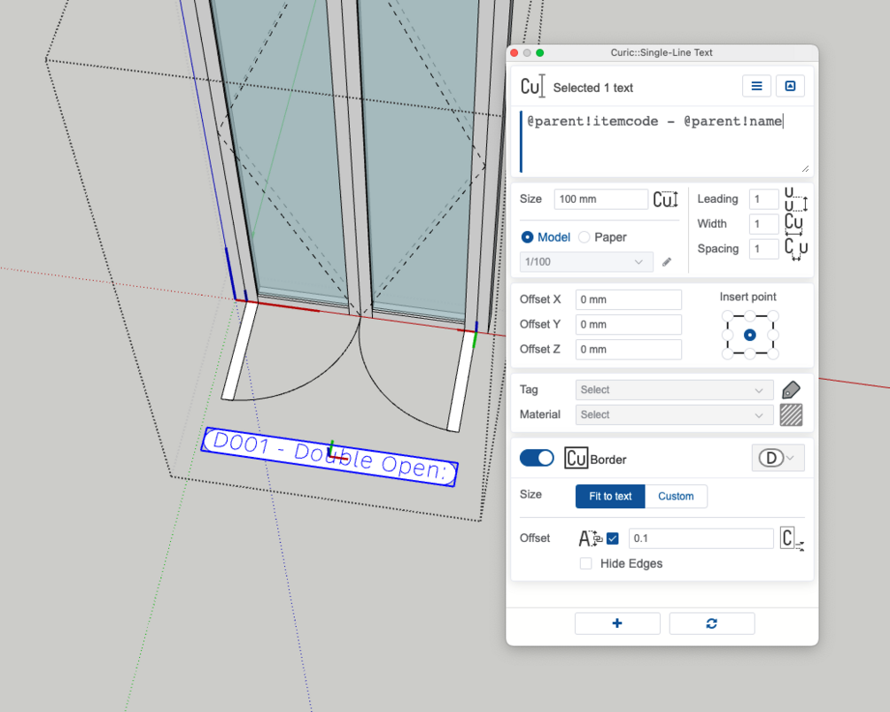 - Autotext and Dynamic Component Attributes: With Curic Single-Line Text, you can save time using auto-text and embedding dynamic component attributes in your 3D text.